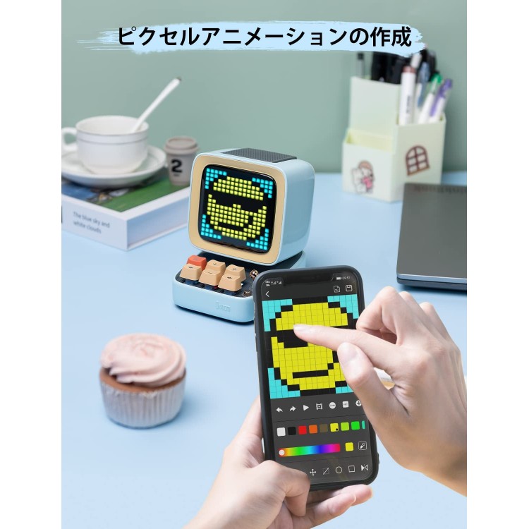 - نمایشگر LED پیکسلی ۱۶x۱۶ با اپلیکیشن پیشرفته: نمایشگر تمامرنگی اجازه میدهد انیمیشنها، تصاویر هنری، یا پیکسل آرتهای شخصی بسازید. اپلیکیشن Divoom هزاران طراحی آماده، ابزار ویرایش، و حتی گالری جامعه کاربران دارد. بررسی YouTube در سال ۲۰۲۳ اشاره میکند که این ویژگی “endless customization” فراهم میکند و برای دکور کاوایی یا گیمینگ ایدئال است