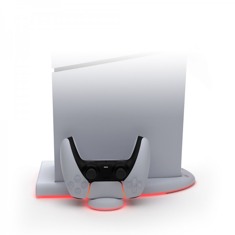 این پایه دارای دو پورت USB-C مخصوص شارژ گیم پد است که دو عدد دوال سنس را در حداکثر چهار ساعت شارژ میکنند. این شارژر دارای نوار LED است که هنگام شارژ، رنگ قرمز و پس از پایان شارژ، بعد از قطع جریان برق، به رنگ آبی درمیآید و نگران شارژ و جریان بیش از حد برق نخواهید بود.