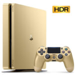 نمای کلی کنسول Playstation 4 Slim Gold با کنترلر طلایی