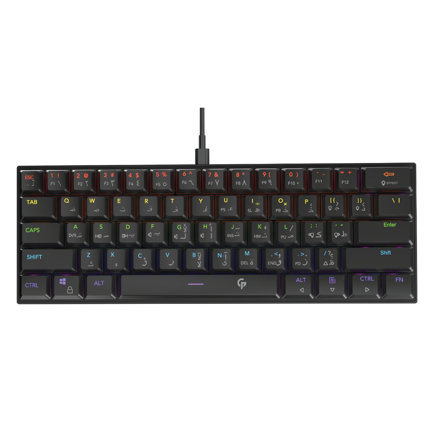 - تعداد کلیدها: 61 کلید (چیدمان TKL US + عربی)