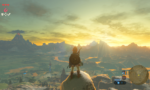 Link overlooking the vast open world of Hyrule in The Legend of Zelda: Breath of the Wild.